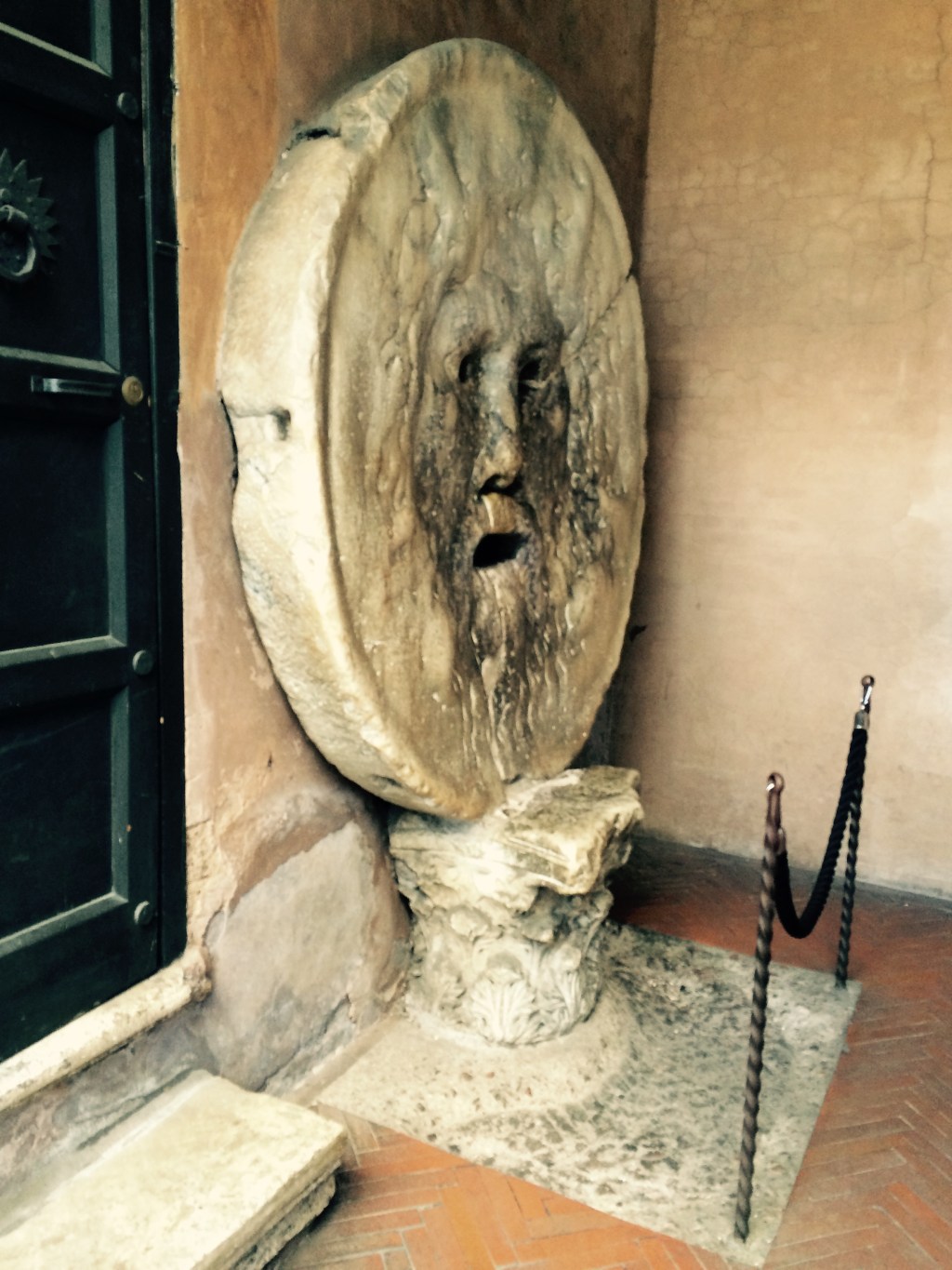 The Mouth of truth is an ancient Roman marble sculpture in Rome said to be created in 1512 by Lucas van Leyden and is located against the left wall of the portico of the Santa maria in Comedin Church, although some stories relate it to going back to the 1400’s. It is linked to a curious and somewhat fascinating medieval tale according to which the mouth could bite the hand of liars. The brave are encouraged to put their hand into the mouth and answer a question given by a friend or lover. Should your answer be untruthfull your hand would be bitten. In the movie Roman Holiday, Audrey Hepburn takes the challenge!