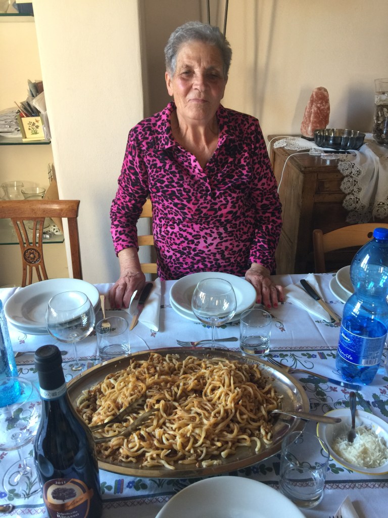 It is in this house that I enjoyed and learned to make Pici. Cristina’s mother, Nonna Rina, who lived in the neighboring village of Montepulciano, would go to their house faithfully every Sunday and together with Cristina make Pici. I was fortunate to get a first-hand cooking lesson one year when we were visiting. Pici is a dish par excellence of the Sienese Hills lovingly created by Sienese Pastaii (pasta makers). It is a thick pasta typical of the entire province of Siena. Today, I will tell you what I know and love about Pici. At another time I will tell you about one of my favorite wineries in Montepulciano, Monte Mercurio and the wonderful gift they unknowingly gave me. It was a gift of information which unlocked a mystery for me and what I have always thought of and fantasized over as Nonno’s road!