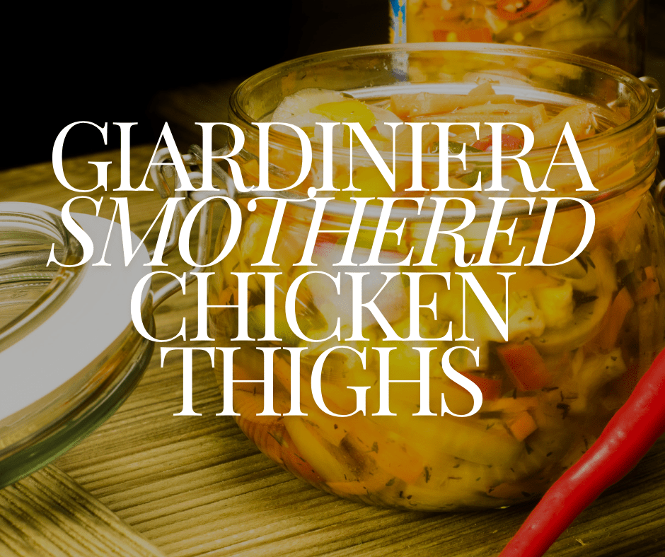 until just starting to smoke. Add chicken skin side down and cook until the skin is well browned and crispy – 5 to 7 minutes. Turn chicken over and transfer to pre-heated oven. Cook until chicken registers 175º. Transfer chicken to platter and top with giardiniera that has been warmed.