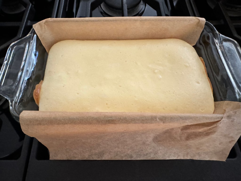 Line the loaf pan with parchment paper allowing enough hanging over on the sides to make it easy to lift the cake out.