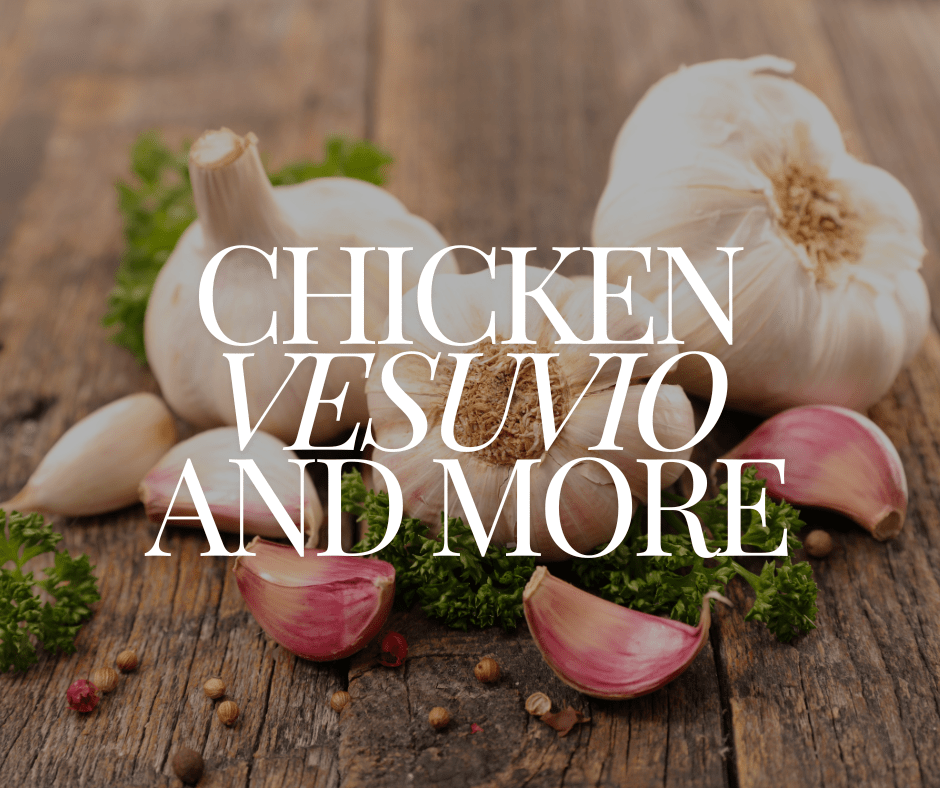 (A garlicky chicken dish named after Mount Vesuvius.)