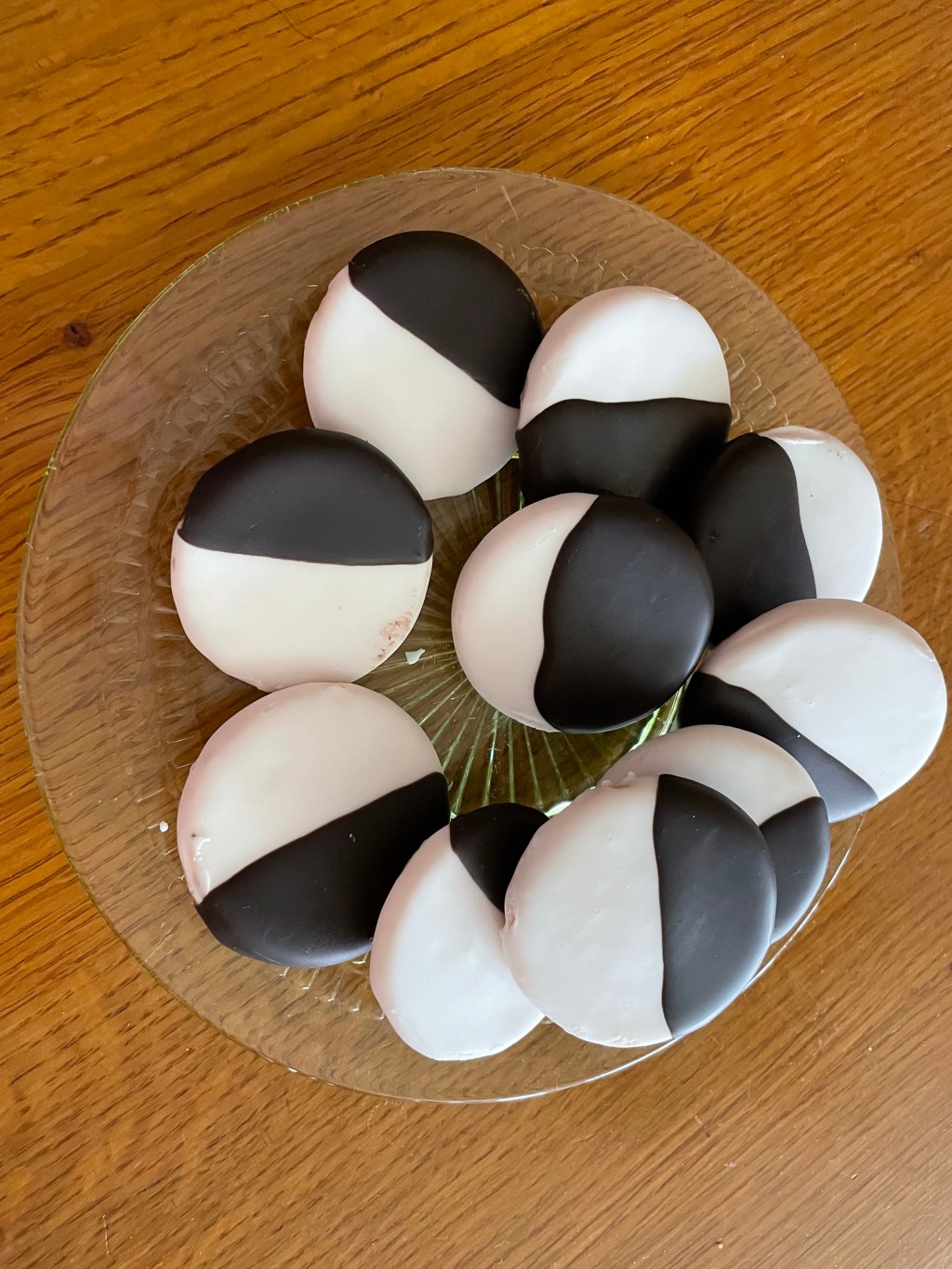 Black and Whites were a staple in most neighborhood bakeries during all my growing up years. My Mother never bought them but, they always intrigued me. Finally, as a teenager when I had a part-time job, I purchased my first Black and White at Hanscom Bakery on 2nd Ave and thoroughly enjoyed it at coffee break time. But the best way to enjoy a Black and White was with an old fashion New York Egg Cream! Black and Whites disappeared for a little while but, they have recently started making a comeback. This younger generation thinks they are a new invention! But basically, they are really just a great old time New York City cookie.