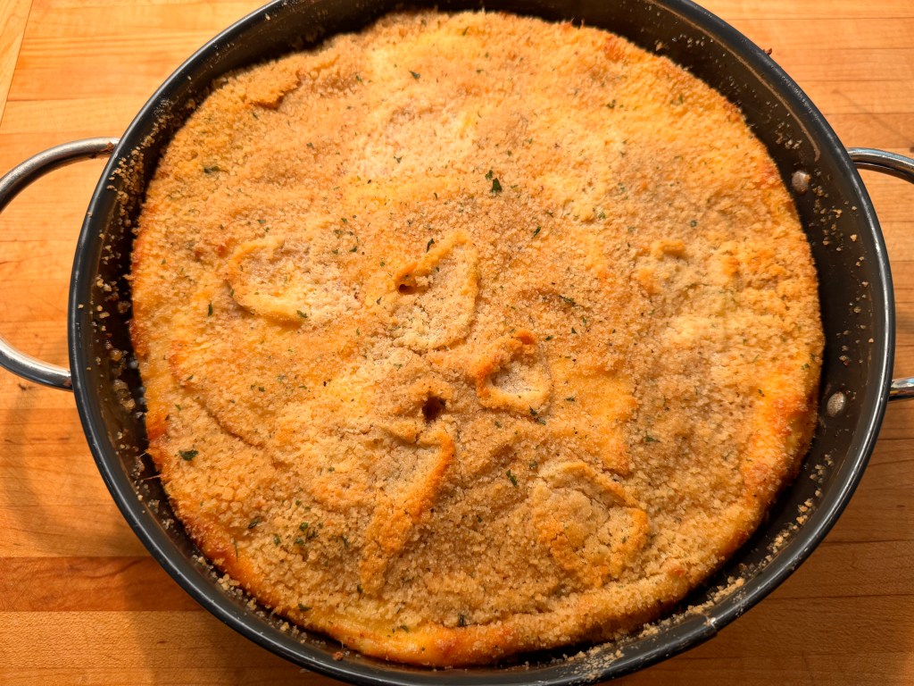 This simple dish makes a nice lunch or informal dinner. It is sort of the Sicilian version of Shepherd’s Pie and is perfect with just a tasty salad and some crusty Italian bread.