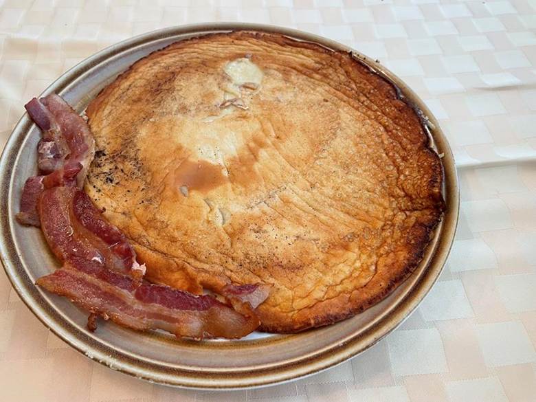 Carefully pour the batter into the hot skillet, swirl to spread it out (swirling is very important in order to distribute evenly) and then bake until it is puffed and set and a nice golden brown – 5-6 minutes and maybe a little longer depending on pan.